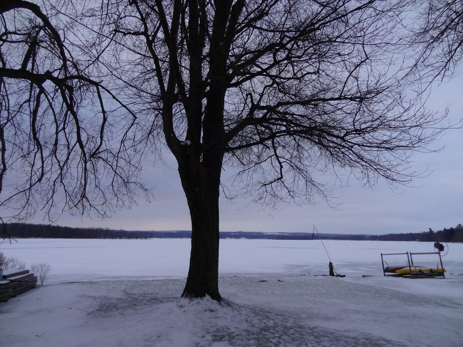 Up at 6:30, Evie's already up reading on her IPAD, coffee's made, the lake is just beginning to lighten. My flag has been shredded by yesterday's vicious wind and there's more wind today, up to forty miles an hour. It's 28ยบ outside, not a very pleasant look to the day, cold and wet, with snow later in the evening. And yoga has been cancelled by Chris because of weather. This is becoming too common and it's fine this morning on the roads.