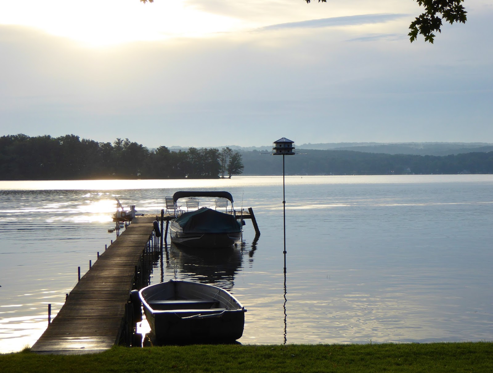 While I was out cutting weeds, Evie was making some mushroom barley soup and a menemen, a Turkish omelet for lunch. I ate and watched another episode of Ray Donovan, and joined Evie out on the dock. Soon, however, it became too hot for me, so I sat under our trees and read. Evie took a break from the dock, to put together our dinner of chicken enchiladas. Around 3:30, I got bored with sitting and decided to see if a bike ride would be a good idea. So I went to Bemus, with the idea of a short ride but ended up riding for an hour, my usual ride, out to Long Point, through the park, and back to my parked car, near the bridge. It was surprisingly windy and I could not tell which direction the wind was coming from because it always seemed I was going into the wind. When I got home, I joined Evie on the dock for a glass of wine before dinner.