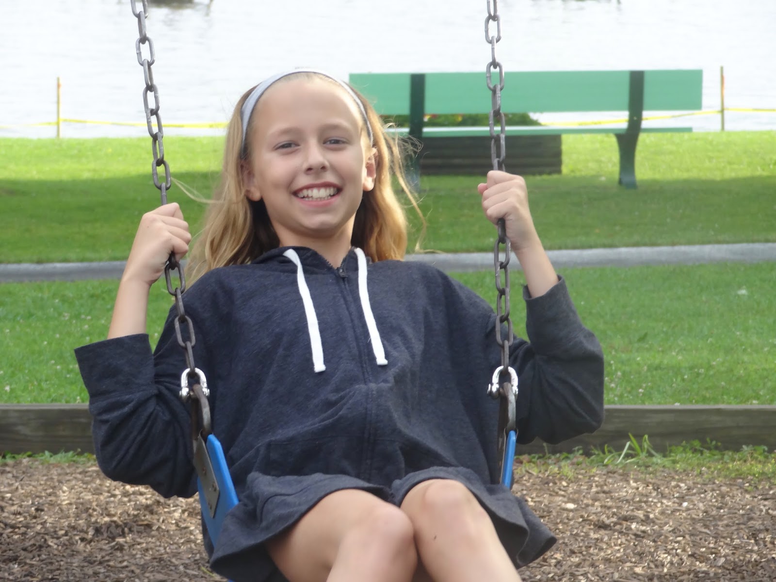 We got cleaned up and showered by 6:00 and drove over for the once a summer wing fest at the Casino. It was surprisingly empty when we arrived, so we had our choice of seats but by the time we left, there was a good crowd. The wings were fine, and everyone seemed to enjoy them. The game alley, where the kids loved to waste their money, did not interest them much this year; they are growing up. Afterwards, they played some on the swings, and then we walked to get ice cream cones, Marlena excited about the cotton candy ice cream. We were home by 8:00, in time to watch a couple of terrible shows on TV but four played cards, a game called Telefunky, which the kids love and my Mom taught them. At 9:15, the crazy girls wanted to go for a swim, so up they went for the third of fourth time, put on their suits and Evie took them out for a night swim. They loved it. We were all in bed by 10:30, tired from our day of swimming.
