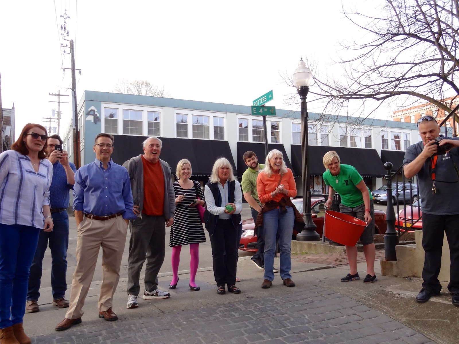 Around 5:00, I cleaned up the yard, put away the tools and took another couple of trash cans of leaves and trash up the hill to the wood pile. Both of us then took showers, put on our finest, as the Ron and Linda were picking us up at 6:00. We drove to Jamestown, to have a beer at Brazil's Craft Beer And Wine Lounge, on 4th street, across from the YMCA. They were having a benefit for the YMCA, where 25% of their profits that night went to the Y. It was fun, with lots of people, a few raffles and bowling down the alley with water balloons. Evie won both second and third place with her balloons, as the balloons that went the farthest, were winners. She won two tickets to the Reg Lenna Movie theater. We were also able to garner four seats at at the bar, enjoyed a couple of wheat beers and Evie and Linda struck up conversations with some of the women who work at the Y.