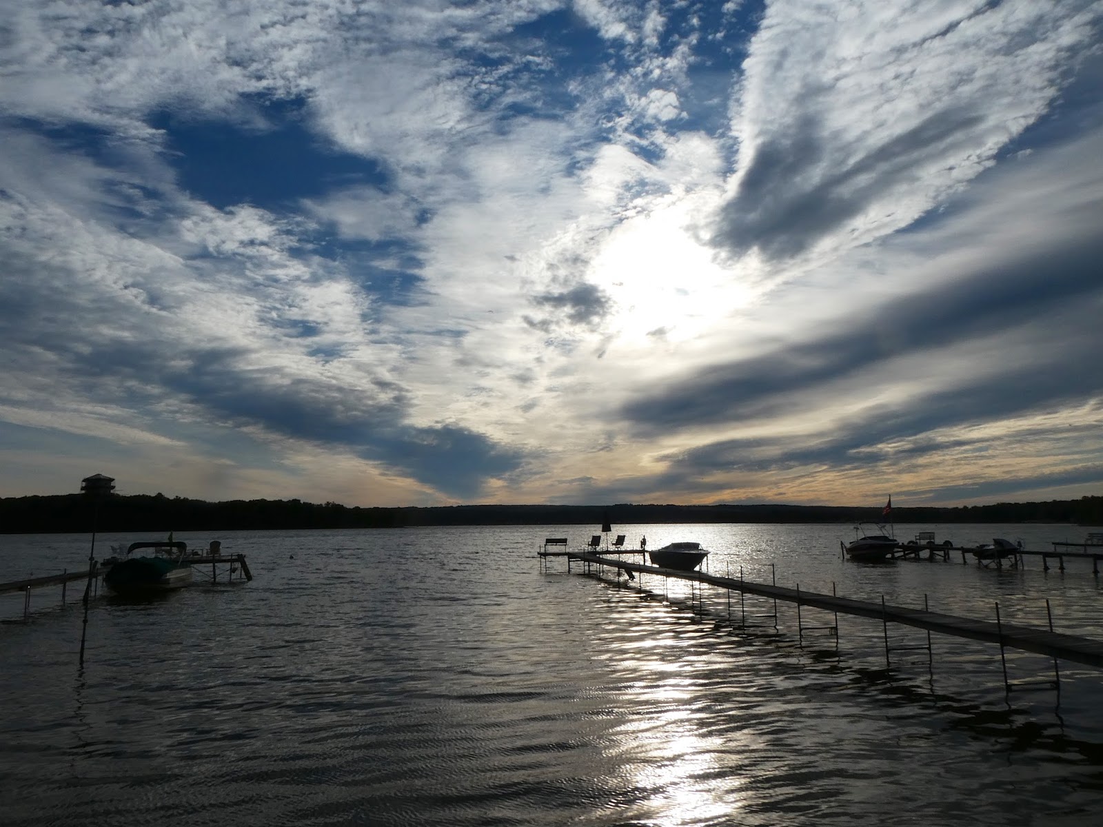 Evie had organized a few things around the house in the morning but around 1:00, she realized it was a perfect temperature to be out on the dock, enjoying the sun. So she stayed out there until 3:00 when it clouded up. I stayed in and read and took a nap. We did not do much the rest of the day although I did give my Outback a quick wash, trying to keep it clean from the detritus from the pine and willow trees. And Evie decided I was looking a bit ragged, again, and gave me a quick hair cut so I look presentable.