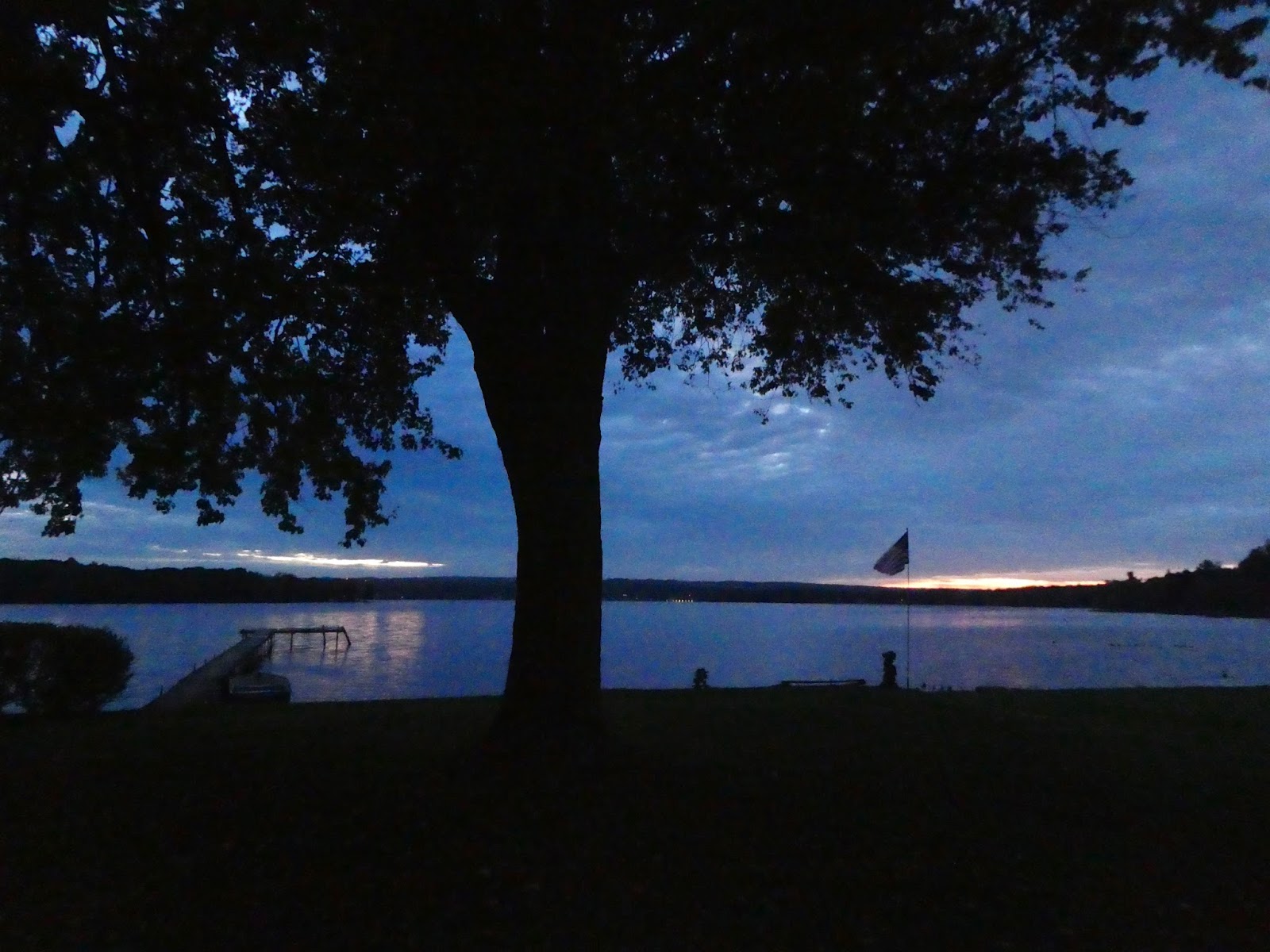 Around 3:30, we had enough of the sun and it was starting to get windy so Evie took what may be her last swim of the year. After the swim, Evie started to get things organized for our trip, always an arduous task. I finished up with taking everything off our dock, putting up a fishing line to keep geese off our lawns, cutting the lawn and storing all the boat stuff in the garage attic. It was warm enough to work up a sweat so I decided that despite the wind, I would swim. It was great once I got in, refreshing and it woke me up.