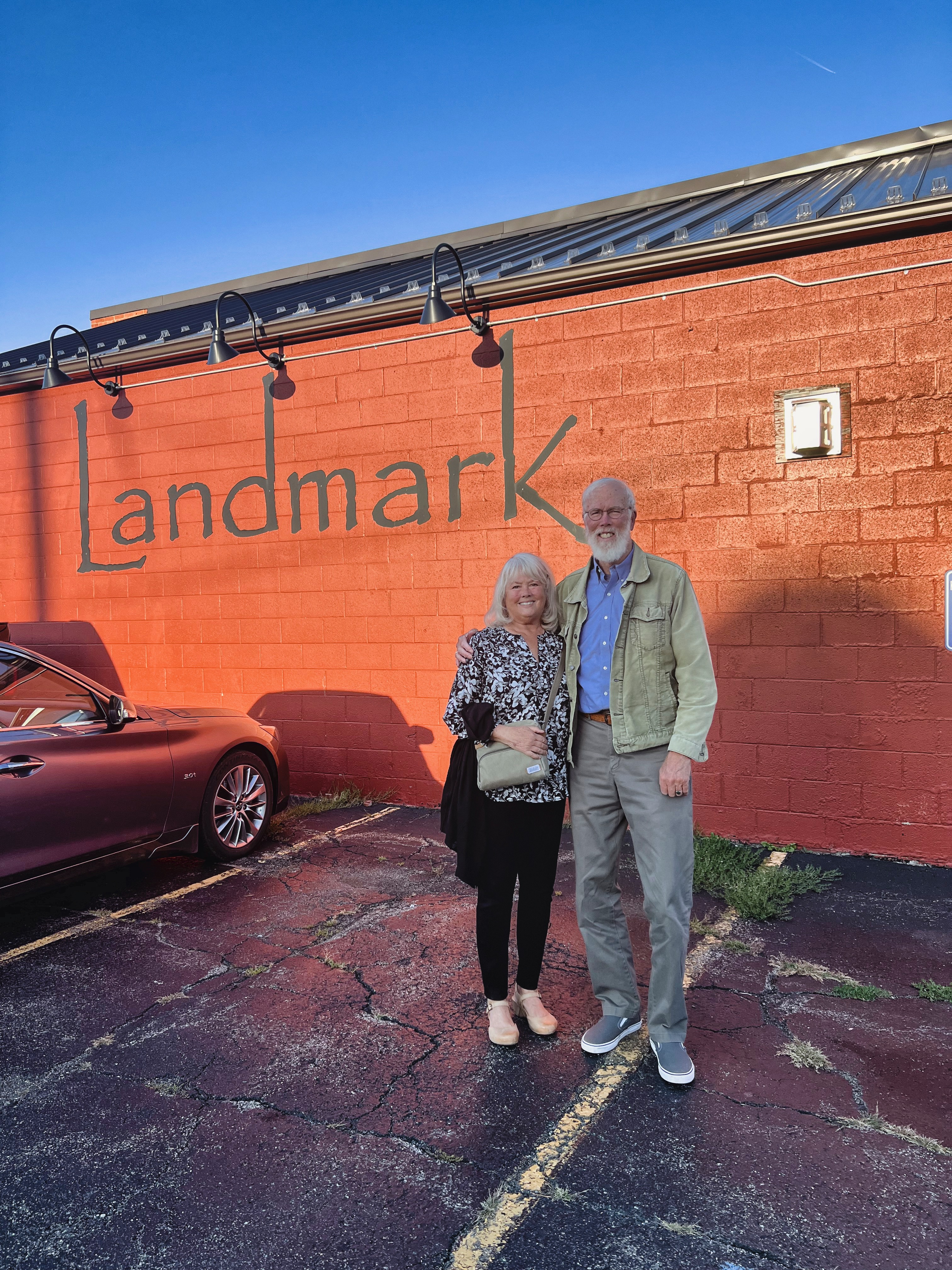 We got home around 1:30 and despite it being her birthday, Evie hustled me up a fried baloney sandwich. I watched my show. The rest of the afternoon went as usual as we were pooped from the hike and were ready to relax, either reading, napping, or watching some TV. We were going out to dinner so Evie showered around 4:00, then had a Zoom call with her sisters at 5:00. By 6:00, we were both gussied up for Evie's birthday dinner at our favorite Jamestown restaurant, The Landmark. Linda and Ron picked us up right at 6:00 and we had reservations for 6:30 although we probably didn't need them as the restaurant was barely half full.