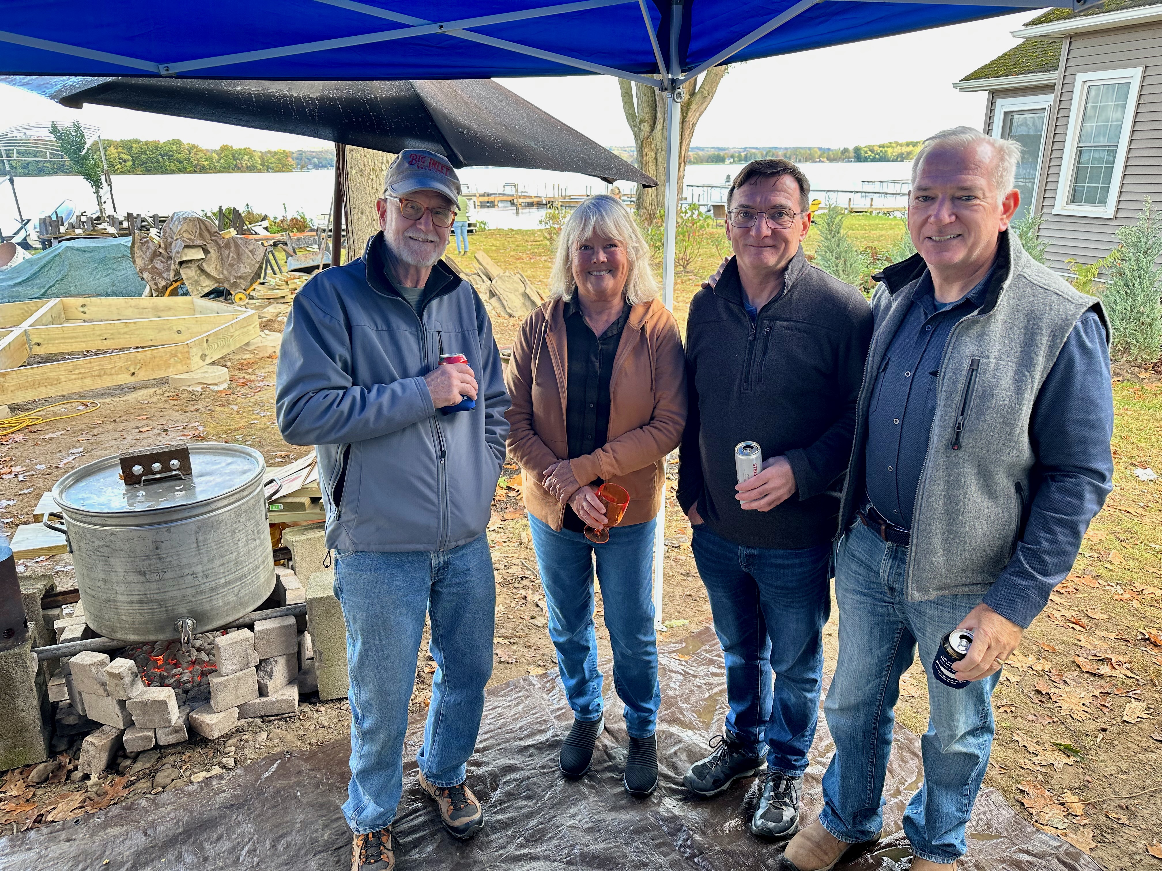 Saturday was a bizarre day weather-wise. I thought it was going to be a good day for a clambake and it started out that way at least in the morning. I kayaked, enjoyed breakfast, and wrote the blog to mostly sunshine. We had a leisurely coffee until Evie got busy in the kitchen, making an apple pie and an appetizer for the clambake. By 10:30, I was off to the Transfer Station with the trash, job one was done. When I returned, I got a couple more items checked off on my to-do list for the fall, moving some logs to the front yard, and readying for the storing of the dock pieces. It felt good to take a bite of the elephant.