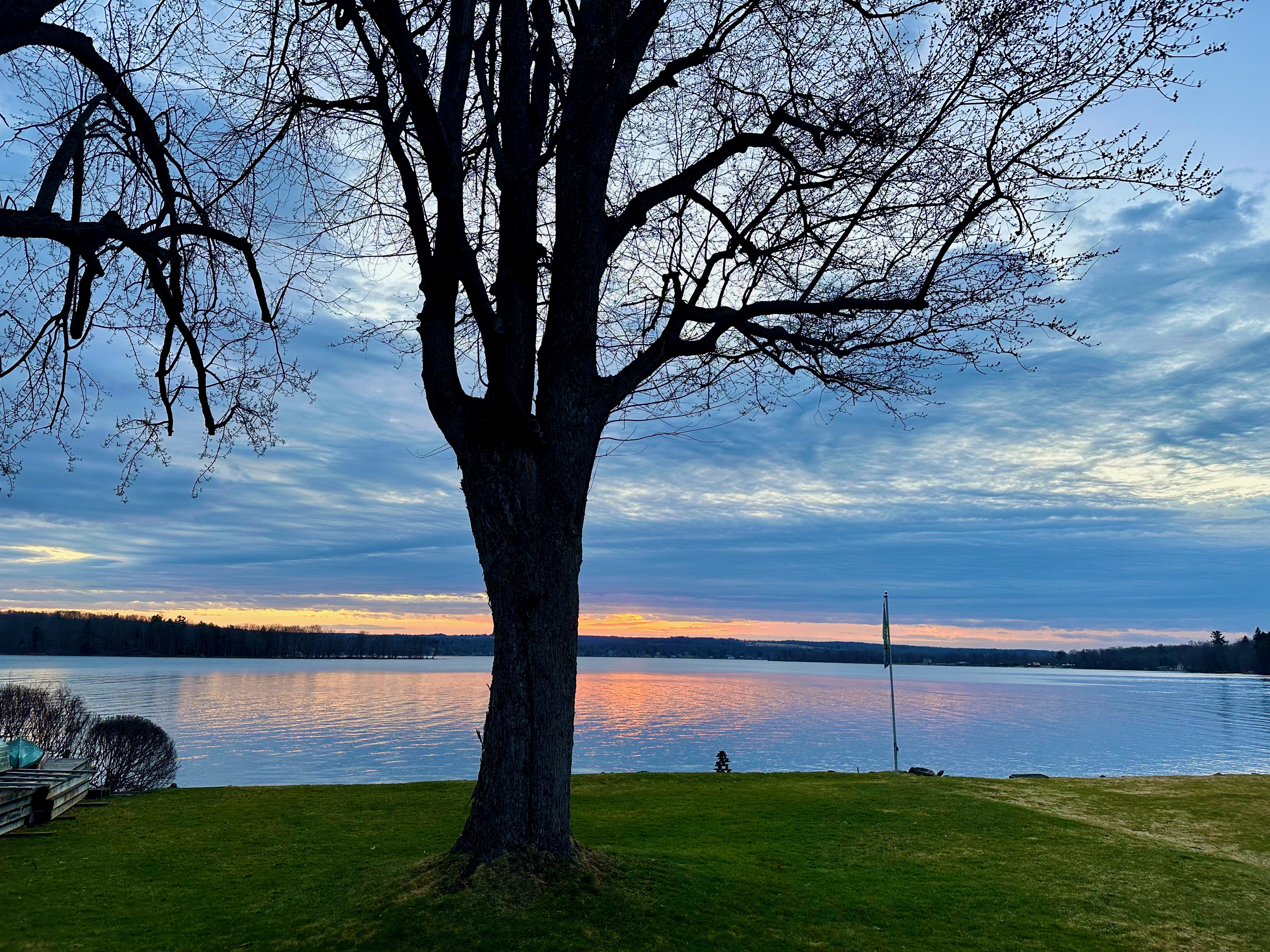It's 7:25 and I have been up since 7:00, watching the partly cloudy sky, with blues, blue-grays, gunmetal grays, and a streak of orange over the eastern horizon. It's 52º and starting to get colder, with rain and a low of 29º tonight. It's 9:15 and I just returned from breakfast and I am getting lazy, because I am skipping yoga and kayaking this morning, hanging out at home. Welcome Spring